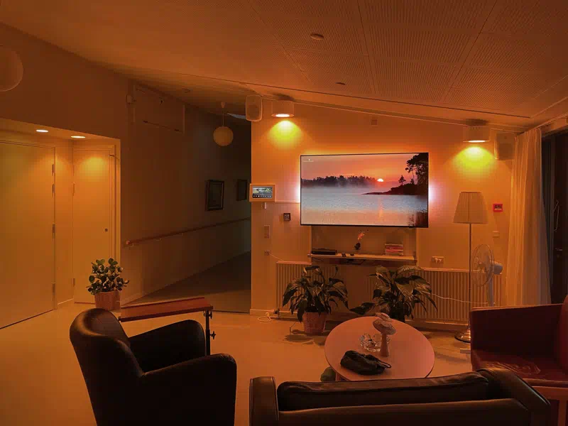 Foto: Sanseløsningen (film, musik og lys) har en stor effekt og nedbringer uroen på Plejehjemmet Lillevang. Det viser sig blandt andet ved, at beboere er mindre vrede, vandrer mindre og er mindre urolige.